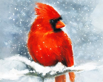 Bird painting, winter scene, red bird, cardinal bird art, wall decor, acrylic art, canvas by thisarttobeyours on etsy.